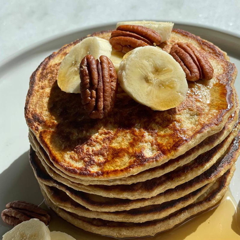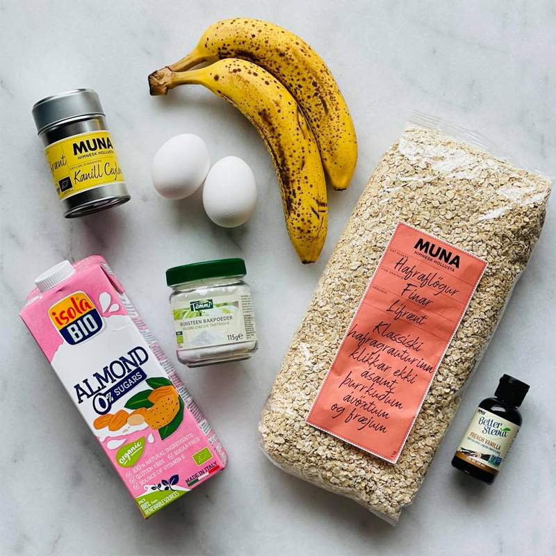 Þessi uppskrift er mjög þægileg og maður skutlar bara öllu í blandarann og tekur enga stund að græja. Þessar pönnukökur eru trefjaríkar og gefa góða og saðsama næringu. Þær eru einnig sykurlausar og mjólkurlausar og tilvaldar fyrir bæði börn og fullorðna. Gott að eiga auka skammt af þeim í frystir og henda í ristavélina seinna eftir þörf. Þær eru líka kjörin næring eftir góða æfingu þar sem þær innihalda flókin kolvetni og prótein.